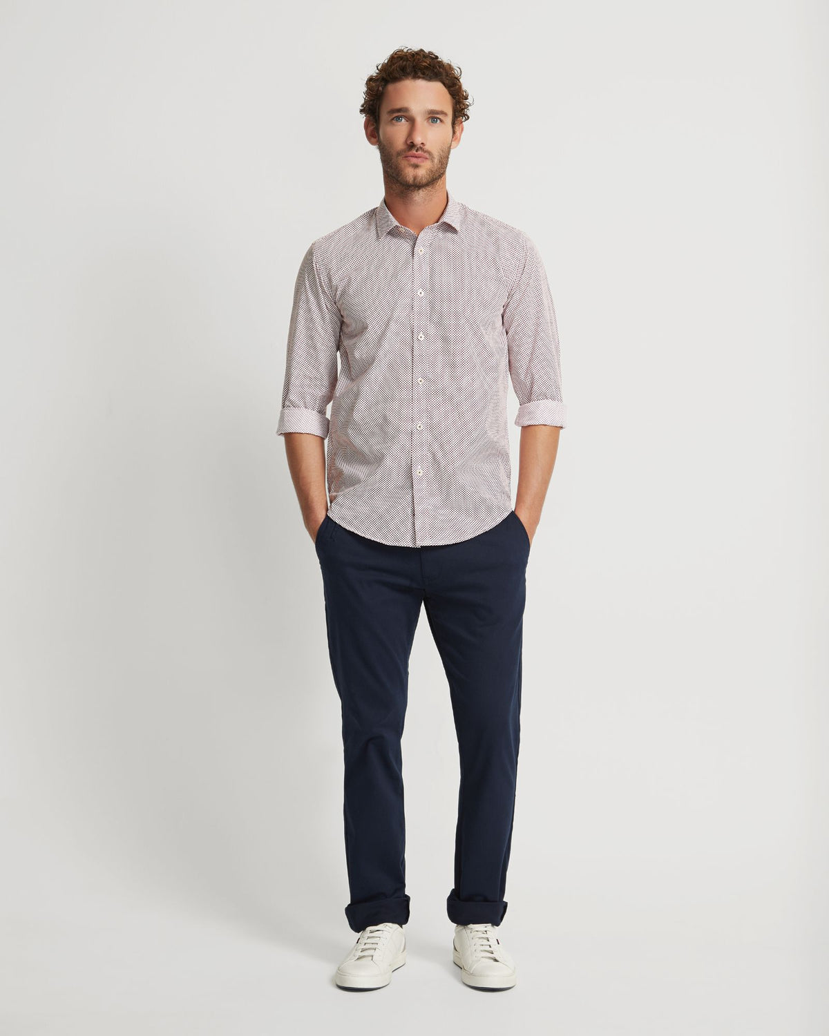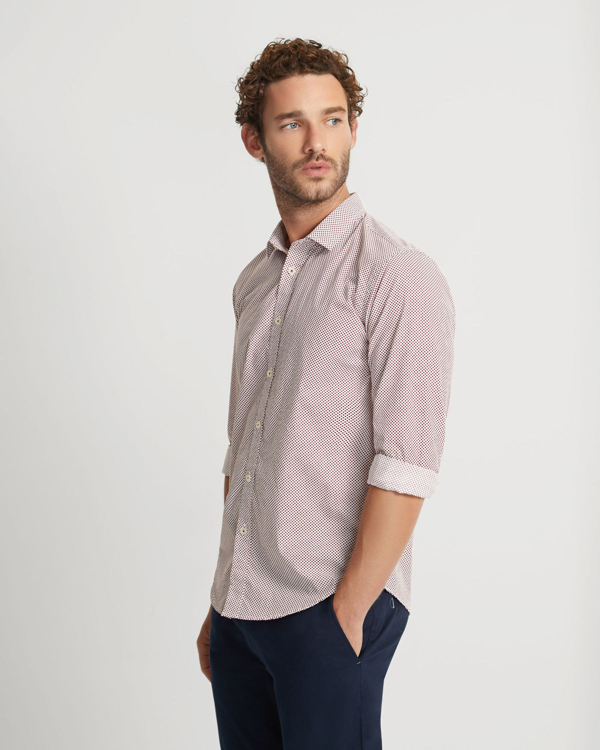 The Kenton Printed Cotton Shirt is a versatile choice for work or play. This slim-fit shirt is crafted from 100% cotton with a subtle dot print. It has...