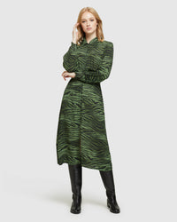Ooze confidence and style in the Kira Animal Print Dress a timeless and sleek look for the modern woman. This long shirt dress is crafted from an exquisite...
