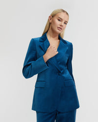 The Raffi Velvet Jacket is a fashion statement that transcends seasons. This slim-fit jacket, inspired by the iconic styles, is reimagined for today's fashion-forward individuals. Made from sumptuously soft velvet, it features a single-button closure to accentuate the waist, offering a flattering silhouette. The jacket is thoughtfully designed with practicality in mind, including two side flap pockets, one internal pocket for essentials, and a fully lined interior for a smooth, comfortable fit. Wear it with the matching Lydia Velvet Trousers for effortless style. Our model is wearing a size AU 8 jacket and usually takes a size 8. She is 177cm (5' 8") tall with a 79cm (31.1") bust, a 60cm (23.6") waist and 87cm (34.25") hips.