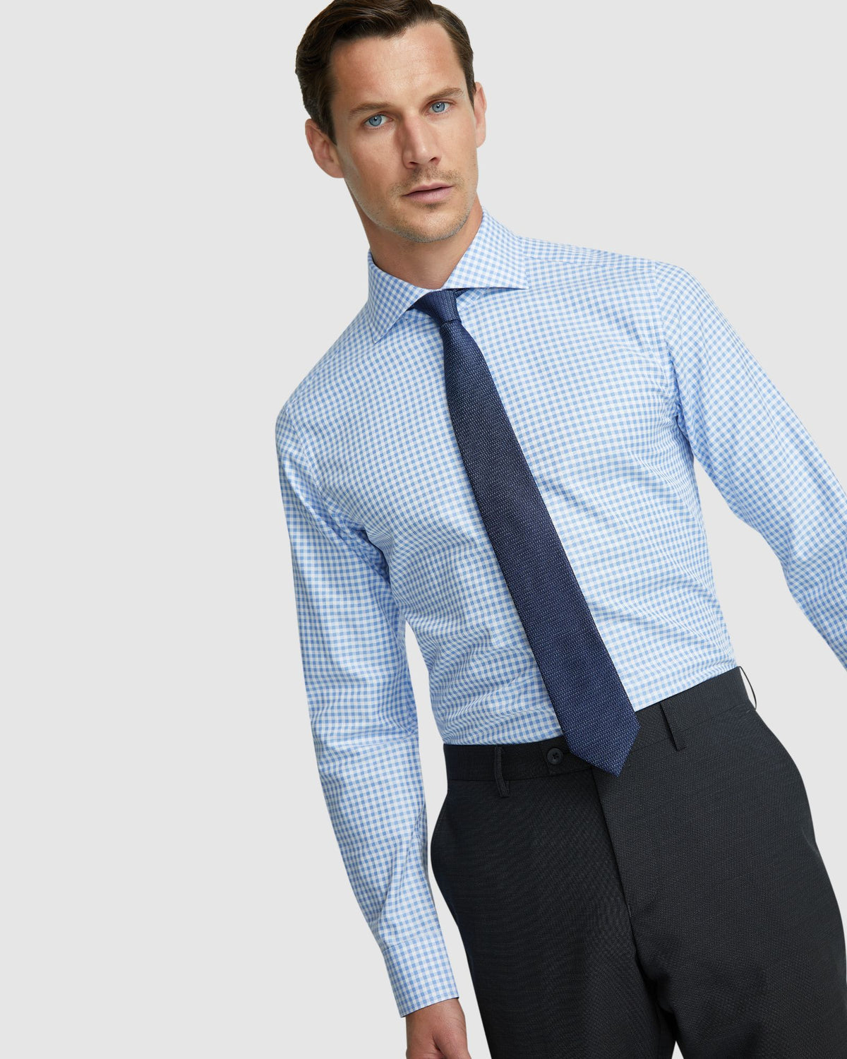 Perfect your 9-5 style with the Trafalgar Check Shirt. This slim-fit shirt is crafted from 100% organic cotton in sky blue with a check pattern. It features a...
